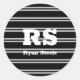 Dicke weiße Monogramm und Name, Lt Gray Lines auf Runder Aufkleber