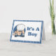 Ein niedlicher Cartoon Baby Junge, ganz in Blau gekleidet mit den Worten: Es ist ein Junge neben ihm. Verkünden Sie der Welt die Ankunft dieses ganz besonderen Babys. Matching der Porto-Briefmarke verfügbar.