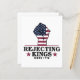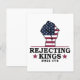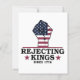 Anti-Monarchie-Erklärung, patriotischer Unabhängigkeitserfolg, keine Könige Amerika, 4. Juli-Botschaft, Anti-Trump-Satire USA, politische Satire, Freiheit nicht Königtum, Gründerväter Stolz, Freiheitsfeier, Rebellengeschichte