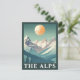 Versenden Sie einen Hauch von Vintage Charme aus dem Herzen Europas mit dieser atemberaubenden Alpen-Reisepostkarte. Dieses einzigartige geometrische Art Deco-Design zeigt scharfe, majestätische Berggipfel und eine auffallende orangene Sonne. Sie ist perfekt als Schweizer Alpen-Souvenir oder als stilvoller Akzent für Ihre Retro-Galeriewand. Ein Muss für Ski- und Reisebegeisterte, die nach vintage-europäischer Landschaftskunst suchen.