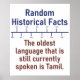 Die Geschichte ist faszinierend. Beweisen Sie Ihre Faszination für diese historische Tatsache: Die älteste Sprache, die noch gesprochen wird, ist Tamil. Ideal für Triviale und Geschichtsfans.