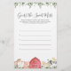 Landtiere themed baby Dusche Vermutung der süßen Schlamassel Spielkarte mit einer Aquarell Safari Tier Illustration und Aquarell Grüne eucalyptus Garland und eleganten handgeschriebenen Stil Schriftart.