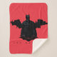 Batman Illustration stehend vor der Fledermausflüglerskyline von Gotham City.