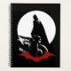 Batman stehend in Silhouette durch den Batcycle mit Bat Logo.