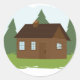 Darstellung einer von Bäumen umgebenen Blockhütte