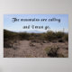 Die Berge rufen, und ich muss gehen. Ein Zitat von John Muir. Gedruckt auf einer Szene aus der Wüste von Arizona mit Bergen in der Ferne.