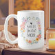Wir stellen unsere individuelle Tasse "World's Greatest Mom" mit farbenfrohem Blumendesign vor. Die Tasse zeigt eine farbenfrohe Wasserfarben-Illustration eines Blumenkranzes und editierbare Texte, die mit Ihrem persönlichen Zitat personalisiert werden können. Geeignet für besondere Anlässe wie Muttertag und als Geschenk für Mütter.