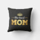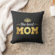 Die beste Mama in weißem Skript und goldgelben Großbuchstaben serif Schriftart. Farbgradation zur Simulation von Glanz. Goldene Krone und Ecken-Verzierungen. Bild auf beiden Seiten des Produkts und Set auf solide fast schwarz platziert.