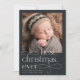 Teilen Sie mit diesen eleganten und festlichen Geburtshilfekarten mit einem quadratischen Foto mit "Best Christmas ever" überlagert in weißer Schrift die Neuigkeiten Ihres Urlaubsjunges. Personalisieren Sie mit dem Namen und den Geburtsdaten Ihres Kleinen und fügen Sie dem Rücken ein zusätzliches Foto hinzu.