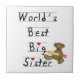 Die weltbesten Big Sister-Sake-Kisten, Fliesen, Ziergegenstände, Gel-Mousepads, werfen Kissen, Notizbücher, Aufkleber und vieles mehr mit einem Teddybär mit einem großen gelben Bleistift und gezeichnet Kid-Style-Text, der lautet "Die beste Big Sister der Welt!". Sie können es noch weiter anpassen, indem Sie einen Namen an Ort und Stelle hinzufügen!