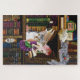 Zwei Kätzchen und eine Fee sitzen in einem Bücherregal voller Bücher für Ihre magische Katze.