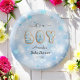 Es ist ein Boy Baby Shower Paper Bowls mit blauem und weißem Herzmuster und niedlichem Schriftart.
