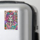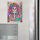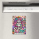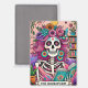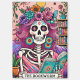Lebhaftes, farbenfrohes Design mit einer lustigen Tarot-Karte mit einem Skelett. Das Skelett hat wild rosa Haare mit Blume darin, ein Zuckerschädelgesicht und hält ein offenes Buch. Der farbige Text lautet: "Der Bücherwurm". Dieses Design ist auf einer Vielzahl von Produkten erhältlich.