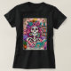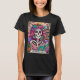 Lebhaftes, farbenfrohes Design mit einer lustigen Tarot-Karte mit einem Skelett. Das Skelett hat wild rosa Haare mit Blume darin, ein Zuckerschädelgesicht und hält ein offenes Buch. Der farbige Text lautet: "Der Bücherwurm". Dieses Design ist auf einer Vielzahl von Produkten erhältlich.