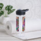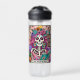Lebhaftes, farbenfrohes Design mit einer lustigen Tarot-Karte mit einem Skelett. Das Skelett hat wild rosa Haare mit Blume darin, ein Zuckerschädelgesicht und hält ein offenes Buch. Der farbige Text lautet: "Der Bücherwurm". Dieses Design ist auf einer Vielzahl von Produkten erhältlich.