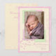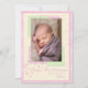 Zeigen Sie ein Portrait Ihres bezaubernden jungen Mädchens. Cremefarbene Weihnachtskarte mit rosafarbenem Rand. Das Bild wird von süßen rosa und blassgrünen Kartons gerahmt. Herz und Schneeflocken schwimmen unter dem Bild. Text liest "Baby's First Christmas" und kann geändert werden. Personalisieren Sie den Text mit dem Namen Ihres Babys und dem Jahr. Fotografie © Storytree Studios, Stanford, CA