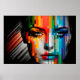Digitale Kunstmalerei Porträt eines schönen jungen Gesicht in Schwarz-Weiß und selektiv eingefärbt und in Farbbalken gestylt. Das ist ein weiteres 100% originelles Schnürhammer Design.
