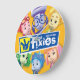 In diesem hellen Kreisentwurf, der das Fixies Logo im Blau kennzeichnet, wollen die Fixie Kinder, um Sie zu erinnern, dass, wenn Sie ein Fixie bitte treffen nicht ihr Geheimnis heraus lassen Sie!