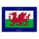 Die Flagge von Wales auf einem dunkelblauen Hintergrund. Wales druckte in englischem und in walisischem.