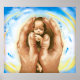 Die Hände Gottes als eine schützende Gebärmutter für ein Kind.