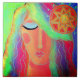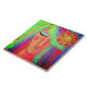 Meine farbenfrohe abstrakte Digitalmalerei einer Frau und die Sonnenstrahlen auf Keramik-Fliesen gedruckt