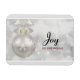 Ein Magnet mit einem magischen Urlaubsdesign. Mit einem silbernen Weihnachtsball mit Schneeflocken dekoriert und mit einem hübschen Silberbogen fertig. Der Hintergrund ist eine silberne Lichtillustrierung mit eleganten Sternen verstreut. Text sagt: "Joy to the world".