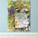 Vintages Gemälde eines christlichen Bibelziels "die Frucht des Geistes, der Liebe, der Freude, des Friedens, des langen Leidens, der Sanftheit, der Güte. Glaube, Sanftheit, Beharrlichkeit: dagegen gibt es kein Gesetz" gal-v 22, 23 mit gelben Blumen, violetten Blume, rosa und lila Blumen, und ein lila Schmetterling, umgeben von grünen Blätter mit einer Schriftrolle oder Pergament die Mitte mit einem Zitat aus der Bibel.
