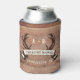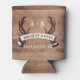 Custom Wedding Can Cooler, Gastgeschenk Hochzeit - The Hunt is Over antlers Bannerdesign mit personalisierten Paarinitialen, den Namen der Braut und des Bräutigams, dem Hochzeitstag und dem Ort. Um den Text zu ändern, verwenden Sie die Option Personalisieren. Für umfangreichere Textänderungen, z. B. Änderungen am Schriftart, Schriftart, Textgröße und Layout, wählen Sie die Option Anpassen. **Ermäßigung ist bei einer Großbestellung möglich.