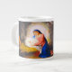 Tasse des Kaffees mit Wladimir Borovikowskis religiösem Gemälde Die Geburt Christi (1757-1825). Mutter Maria hält den neugeborenen Jesus in seiner Hand mit einem Stall voller Tiere, Engel und Hirten, die darauf schauen. Ein bedeutendes Geschenk für Weihnachten und religiöse Feiern.