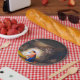 Teller mit Wladimir Borovikowskis religiösem Gemälde Die Geburt Christi (1757-1825). Mutter Maria hält den neugeborenen Jesus in seiner Hand mit einem Stall voller Tiere, Engel und Hirten, die darauf schauen. Ein bedeutendes Geschenk für Weihnachten und religiöse Feiern.
