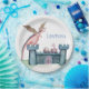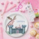 Illustration eines verzauberten und alten Schlosses mit zwei kleinen Eiern, von denen eines mit einem neugeborenen Drachen.