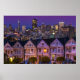 San Francisco leuchtet im Hintergrund als Dämmerung Sets auf den berühmten bemalten Ladys. Eine Reihe von Viktorianischen Zuhause, die zwar ähnlich gebaut sind, aber dennoch ihren eigenen einzigartigen Stil durch Dekoration und Farbwahl zeigen. Sie sind eine der bekanntesten Sehenswürdigkeiten der Stadt.