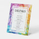 Das Pedestal Sign mit Drink Menu der "Ethereal Bloom Collection", eine atemberaubende und funktionelle Ergänzung zu Ihrem Hochzeitsempfang. Dieses elegante Schild besticht durch ein faszinierendes alkoholfreies Kunstwerk in lebhaften Farbtönen wie Blues, Purpur, Rot, Orangen und Grüntöne, ergänzt durch zarte, doppelbelichtete Lilien. Das Kunstwerk schafft eine raffinierte und künstlerische Kulisse, die einen raffinierten Ton für Ihre Veranstaltung setzt. Am oberen Ende des Schildes wird die Beschriftung "Sip & Savor" anmutig angezeigt, in der Gäste die Getränkeoptionen erkunden können. Unter diesem einladenden Header bietet das Getränkekarte eine kuratige Auswahl an Getränken, darunter Cocktails, erlesene Weine und erfrischende alkoholfreie Gerichte. Jedes Getränk wird detailliert beschrieben, sodass die Gäste ihre Auswahl leicht treffen können. Das faszinierende Kunstwerk des Zeichens setzt sich durch und bietet ein nahtloses und visuell auffälliges Design. Die Namen des Paares und das Hochzeitsdatum sind elegant integriert, und fügen eine persönliche Touch hinzu, die das Thema gemeinsam Krawatte. Ein QR-Code oder ein individualisierbarer Textbereich können Sie einschließen, um zusätzliche Details zu erhalten oder um die Gäste zu bitten, mehr über die Getränke zu erfahren. Das Pedestal Sign with Drink Menu der "Ethereal Bloom Collection" verbindet künstlerische Schönheit mit praktischer Funktionalität, die das Ambiente Ihres Empfangs steigert und die Gäste zu einem angenehmen Getränkeerlebnis führt. Es ist eine perfekte Mischung aus Eleganz und Stil, um Ihre Feier unvergesslich und bezaubernd zu machen.