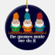 Die Gnomes ließen mich ihn tun. 3 verschiedene farbige Gnomes, die heraus hängen. Parodie/Parodie des Teufels ließen mich ihn tun. 3 Gnomebilder.