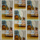 Vintage Halloween Grußkartenabbild, die ein Kind zeigt, das einen Jack o'lantern im Fenster anschaut.