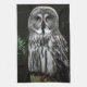 Die Große Grauschüssel - Portrait einer großen grauen Eule stehend auf einem Protokoll fotografiert direkt auf die Kamera. © Alan Harman Fotografy 2009. Alle Rechte vorbehalten. www.alanharmanphotography.com 210518 Küchenhandtuch