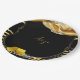 Eine luxuriös schimmernde goldene Seidenstruktur, die durch zwei Hochzeitsringe auf einem dramatischen schwarzen Hintergrund mit einem Deko-Stift gezogen wird, um dem Design einen eleganten und glamourösen Look zu verleihen.