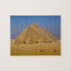 Die Großen Pyramiden von Gizeh, Ägypten. Diese archäologische Sehenswürdigkeit ist die bekannteste in der Welt. Diese ägyptische Nekropole besteht aus der Pyramide von Khufu (bekannt als die Große Pyramide und die Pyramide von Cheops), der etwas kleineren Pyramide von Ghafre (oder Chephren) einige hundert Meter südlich und der relativ bescheidenen Pyramide von Menkaure (oder Mykerinus) Wir) ein paar hundert Meter weiter im Südwesten, zusammen mit einer Reihe kleinerer Satellitengebäude, die als "Königspyramiden" bezeichnet werden,