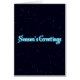 "Die Grüße der Jahreszeit" erscheint in leuchtendem Blau und Weiß auf einem Hintergrund mit Sternen.