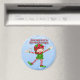 Die Begrüßung Elf Round Magnet der Saison mit einem hellblauen Hintergrund mit Wirbel und Schneeflocken, einem Happy Santa's Elf, der rot und grün trägt und einen bunten Bonbonstock hält. Stilisierter rot gestreifter Text ist die Grüße der Saison. Perfektes Geschenk für Weihnachten kleine Geschenk! Dieses Design wurde mit dem Original artwork©delightful-doodles.com (http://delightful-doodles.com/) erstellt.