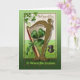 5" x 7" Grußkarte mit einem Vintage-Bild der goldenen Harfe von Erin mit einem grünen Bogen und einem hübschen grünen Kleeblatt. Ein schwarzer Top Hut liegt auf dem Boden neben ihm mit einem grünen Hutband. Im Inneren des individuell gestaltbaren Sentiments steht: "Mögen Sie immer in der Sonne gehen. Möchtest du nie mehr gewollt haben? Mögen irische Engel ihre Flügel direkt neben Ihrer Tür Erholung. Mögen Ihre Taschen schwer sein und Ihr Herz leicht sein, May viel Glück verfolgt Sie jeden Morgen, Mittag und Nacht." Die gesamte St. Patrick's Day Grußkarten-Sammlung finden Sie unter der Rubrik CARDS & STICKERS im Bereich HOLIDAYS.