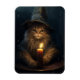 Eine bezaubernde Katze in einem Hexenhut mit Kerze