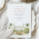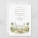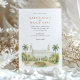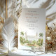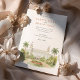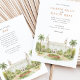 Mit dieser exquisiten Hochzeitseinladung in Aquarellfarben laden Sie Ihre Gäste zu einem unvergesslichen Anlass ein. Hier wohnen Sie im eleganten Hotel Breakers in Palm Beach, Florida. Das Kunstwerk besticht durch die Pracht des historischen, weißen und cremefarbenen Luxusresorts, das mit seinen charakteristischen Zwillingstürmen, die stolz unter amerikanischen Flaggen stehen, besticht. In einem sanften, eleganten Aquarell-Stil gestaltet, ist die Szene von einer üppigen tropischen Landschaft mit hohen, anmutigen grünen Palmen gerahmt. Ein lebendiges kreisförmiges Blume-Bett an der Vorderseite zeigt wunderschöne Blüten in strahlenden Rot- und Weichrosa, möglicherweise Rose oder klassische Gartenannuals, ergänzt durch reiches grünes Blattwerk und sorgfältig gepflegte Rasenflächen. Diese Einladung strahlt Raffinesse aus und eignet sich hervorragend für eine luxuriöse Hochzeit in Urlaubsort oder ein klassisches Florida-Fest. Die Vorderseite präsentiert elegant Ihre Hochzeitsdetails, während die Rückseite "The Finer Details" für weitere Gästeinformationen anbietet. Die Farbpalette umfasst knusprige Weiße, warme Cremes, verschiedene grüne Grüntöne von Palmen und Rasen, lebendige Rot- und Rosatönen der Blume und subtile Sandtöne der Alleen.