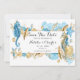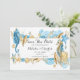 Sea and Beach Blue Gold Summer Wedding Save the Date Card mit Seepferden, Seesternen, Muscheln und Korallenriffen. Für eine erweiterte Anpassung dieses Designs, klicken Sie bitte auf den Button "Anpassen" oben! Matching-Elemente sind ebenfalls verfügbar.