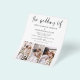 "The Wedding of Modern Elegant Four (4) Foto Collage and Large Date Minimalistisch Wedding Invitation" - eine Mischung aus zeitgenössischer Eleganz und Einfachheit. Diese Einladungen zeichnen sich durch eine moderne Typografie aus, die Eleganz, Einfachheit und eine Touch der Moderne ausstrahlt, die perfekt für Ihre minimalistische Hochzeitsfeier geeignet ist. Was diese Einladungen auszeichnet, ist die Einbindung eines QR-Codes, der Technologie und Tradition nahtlos integriert. Dieser QR-Code kann personalisiert sein, um Ihre Gäste zu einer Website oder digitalen Inhalten zu führen, die mit Ihrer Liebe, Ihren Hochzeitsdetails oder sogar einer virtuellen UAWG in Zusammenhang stehen, wodurch Ihre Hochzeitskommunikation eine einzigartige und bequeme Dimension erhält. Nach Ihrer eleganten und minimalistischen Hochzeitsfeier verwandeln sich diese Einladungen in wertvolle Pflaster, die die Erinnerungen Ihres besonderen Tages bewahren. Mit dem QR-Code werden sie zu einer Brücke zwischen dem Traditionellen und dem Digitalen, was Ihre Hochzeitskommunikation nicht nur schön, sondern auch technologisch innovativ macht. Set den Ton für eine Hochzeit, die zeitlos und modern ist mit diesen Einladungen.
