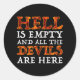 Die Hölle ist leer und alle Teufel sind hier Runder Aufkleber