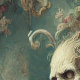 Eine Prozession von Schönheit und Furcht. Die Höllenmotorcade vereint Statuengesichter und knisternde Grotesken in eine üppige Kaskade von barocken Blumen - Pfirsichbäume, violette Rose und Meeresflora, die sich wie Begräbnisbanner in Zeitlupe entfalten. Weinreben, Rollen und die makabre Paraden in Eleganz. Ideal für diejenigen, die ihre Dekadenz Spuk und ihre Blume ein wenig unheilig Liebe.