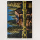 Eine Blockhütte in einem Kiefernwald an einem ruhigen Fluss, unter dem blauen Himmel des Sommers, macht ein wunderschönes Puzzle eines Westerns amerikanischen Landschaft.