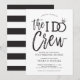 Für die Ido-Crew ist ein Treffen angesetzt. Lass allen in Deiner Hochzeitsfeier direkt, dass ihr Service für ein Post Hochzeitsfrühstück mit diesen trendigen und dennoch formalen Einladungskarten benötigt wird. Das Design enthält die Worte "Die I do Crew" in einem eleganten und dennoch modernen Schriftstil. Das Wort "do" enthält einen glänzenden Diamantenring anstelle des Buchstabens "O", um die Heirat der Braut und des Bräutigams zu bezeichnen. Die Rückseite weist schicke schwarz-weiße Streifen auf. Umgeben von diesem Design sind die Punkte für Ihre einzigartigen Informationen und Textdetails.