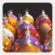 3D-Computerbild mit Weihnachtsbaubeln und einem Ei für lustige Weihnachten oder Ostern. Gestaltung auf quadratischem Aufkleber. Passende Papierserviette und Teller, Grußkarte, Kunsthandwerk und mehr... Vergessen Sie nicht die ganze Sammlung.
